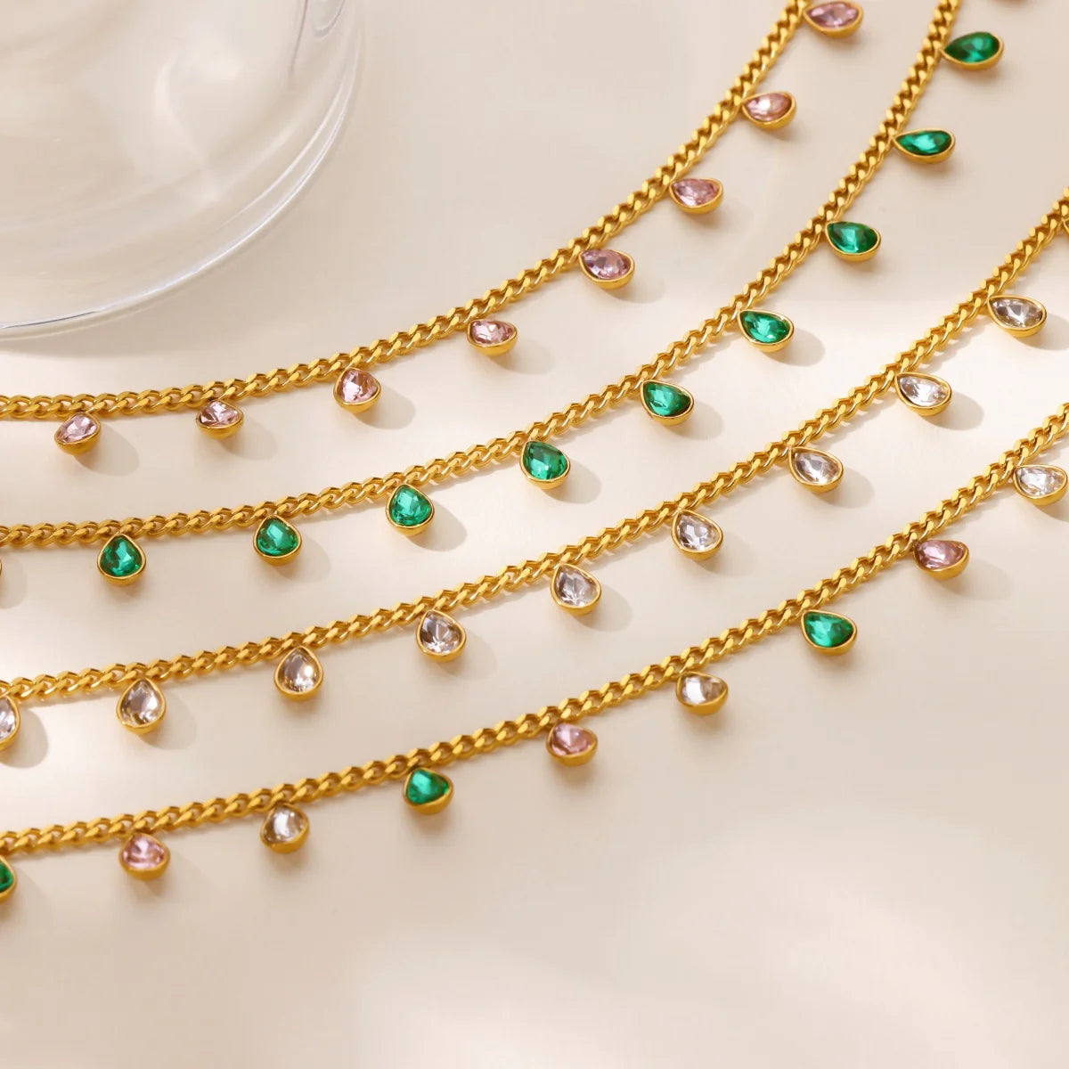 Colored Zircon Waterdrop Necklace For Women Stainless Steel Gold Color Chain Choker Necklace Luxury Jewelry collares para mujer